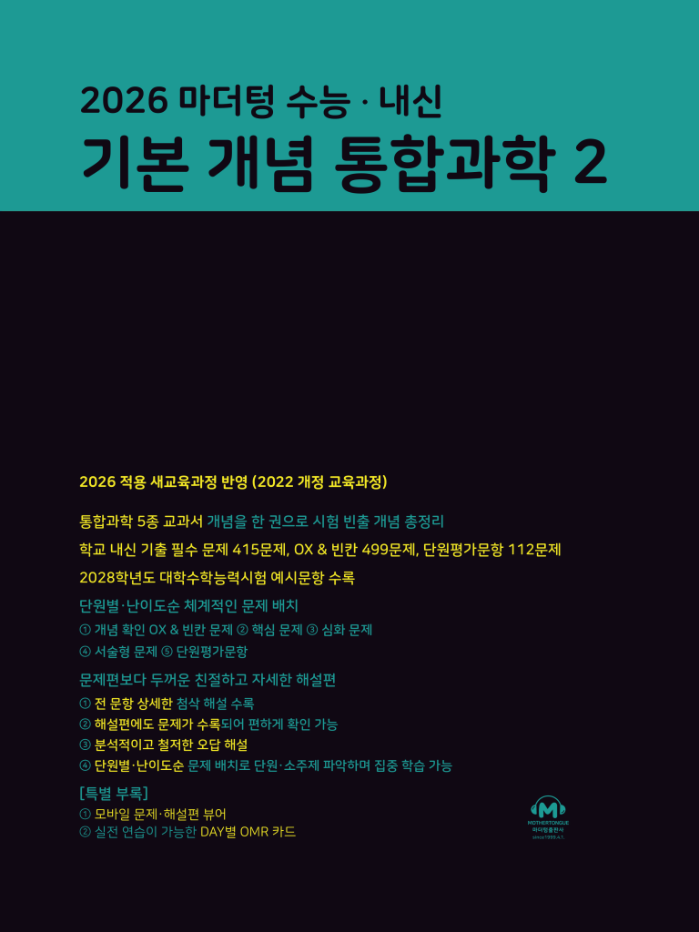 마더텅 수능 내신 기본 개념 통합과학1 답지 (2026)