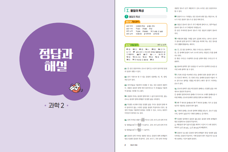 교재 구성은 교과서 내용을 빠짐없이 담아내는 데 초점이 맞춰져 있습니다. 물질의 특성과 혼합물의 분리, 지권의 변화, 빛과 파동, 원소와 화합물, 식물과 동물의 에너지, 전기와 자기, 별과 우주까지 중2 과정 전반을 고르게 다룹니다. 각 단원은 개념 설명이 비교적 자세하게 정리되어 있어 처음 읽는 학생도 흐름을 놓치지 않도록 돕습니다. 교과서에 나오는 탐구 활동과 물음에 대한 설명도 함께 제시되어 있어, 실험의 의미와 결과를 이해하는 데 도움이 됩니다. 아래 링크를 통해 중학교 과학2 비상교육 자습서 답지를 열람할 수 있습니다.