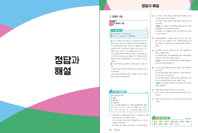 위 링크를 통해 통합과학1 평가문제집 답지를 열람할 수 있습니다. 본 교재의 목차는 Ⅰ. 과학의 기초, Ⅱ. 물질과 규칙성, Ⅲ. 시스템과 상호작용으로 구성되어 있습니다. ‘물질과 규칙성’ 단원에서는 원소 주기성과 화학 결합, 물질의 성질을 다루며, ‘시스템과 상호작용’에서는 지구 시스템의 변화, 역학적 시스템, 생명 시스템 등을 학습할 수 있습니다. 각 단원은 핵심 요약과 수능 예상 문제로 마무리되어 내신뿐만 아니라 장기적으로 수능 학습의 기초를 다질 수 있습니다.