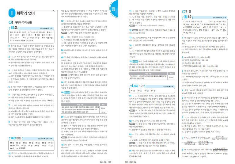 위 링크를 통해 화학 오투 답지를 열람할 수 있습니다. 실제 O2 시리즈에 대한 학습자 평가를 바탕으로 보면, 개념 설명이 비교적 깔끔하게 정리되어 있어 복습할 때 편하다는 반응이 많습니다. 어려운 과학 과목도 단원을 잘게 나누어 설명해 주기 때문에 부담이 덜하고, 문제를 풀면서 바로 확인할 수 있어 공부 리듬을 만들기 좋다는 점도 장점으로 꼽힙니다. 학교 기출 문제를 분석해 출제율이 높은 유형을 반영했다고 소개하고 있어 내신 준비용으로 특히 알맞아 보입니다. 개념만 보고 끝나는 책이 아니라, 시험에서 어떤 식으로 문제가 나오는지 익히는 데 초점이 맞춰져 있다는 점에서 실전성이 있습니다.