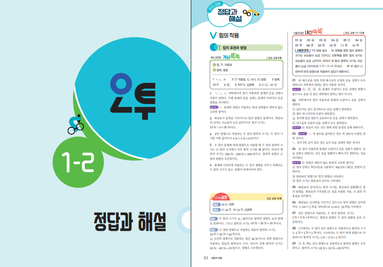 학습할 때는 한 단원을 여러 번 반복해서 보는 방식이 효과적입니다. 처음에는 개념과 그림을 중심으로 읽고, 두 번째에는 탐구 문제와 기본 문제를 풀어보며 이해도를 점검하는 것이 좋습니다. 과학은 용어가 익숙하지 않으면 문제 자체가 어렵게 느껴질 수 있으므로, 틀린 문제는 답만 확인하지 말고 관련 개념 설명 부분으로 다시 돌아가 읽어보는 습관이 필요합니다. 특히 힘의 작용이나 기체의 압력처럼 눈에 보이지 않는 개념은 그림과 예시를 함께 보며 정리하면 훨씬 이해가 잘 됩니다. 이 교재는 이런 반복 학습에 잘 맞도록 구성되어 있어 혼자 공부하는 학생에게도 도움이 됩니다.