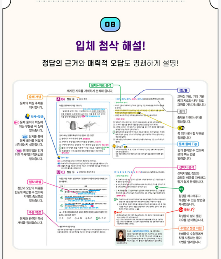 이 책을 제대로 쓰려면 문제를 빨리 많이 푸는 것보다, 한 문제를 풀 때 정답 근거를 자료에서 정확히 찾는 습관을 만드는 게 핵심입니다. 자이스토리의 강점은 1등급과 고난도 문제를 그냥 어렵게만 두지 않고, 단서 발상 적용 순서로 왜 그렇게 풀어야 하는지 과정을 보여준다는 점입니다. 선택지별로 어디에서 많이 틀리는지, 왜 틀렸는지까지 짚어주기 때문에 비슷한 실수를 줄이는 데 도움이 됩니다. 학력평가 대비 모의고사 3회도 들어 있어서 시험 전에 실전처럼 시간을 재고 연습하기 좋습니다.