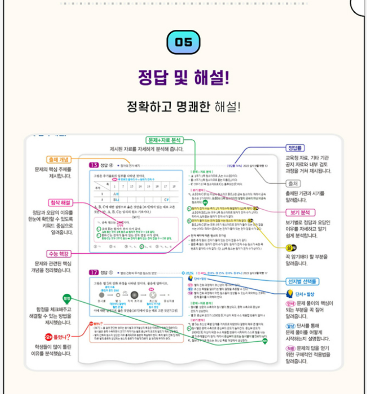 이 교재를 잘 쓰는 방법은 단순합니다. 한 회차를 풀 때는 시간을 정해두고 실전처럼 풀고, 채점 후에는 틀린 문제만 다시 보는 것이 아니라 왜 그 선택지가 답인지까지 근거를 찾아 정리하는 것이 핵심입니다. 통합과학은 과목이 합쳐져 있어서 융합형 문항에서 흔히 막히는데, 이 책은 과목 통합 신유형을 따로 구성해 두어서 낯선 형태의 문제를 미리 겪을 수 있습니다. 해설도 함정과 주의 포인트를 함께 잡아주는 스타일이라, 같은 실수를 줄이는 데 도움이 됩니다.