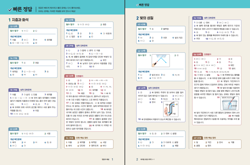HIGH TOP 하이탑 초등 과학 5-1 (2026년)은 초등 5학년 1학기 과학을 “개념부터 심화까지” 한 번에 잡아가고 싶은 학생에게 잘 맞는 교재입니다. 5학년 과학은 지층과 화석처럼 관찰·추리형 내용도 나오고, 빛이나 용해처럼 실험 결과를 해석해야 하는 단원도 함께 들어가서, 교과서만으로는 정리가 헷갈릴 때가 많습니다. 이 책은 전반을 3권으로 나눠서 개념을 차근히 잡아주고, 문제로 확인하고, 해설로 마무리하는 흐름이라 집에서 스스로 공부하기에도 편합니다. 아래 하이탑 과학 초5-1 답지 pdf 올려두겠습니다.