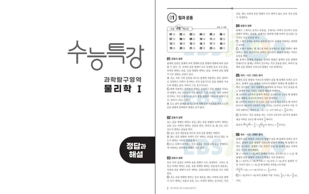 2027 수능특강 물리학1 답지