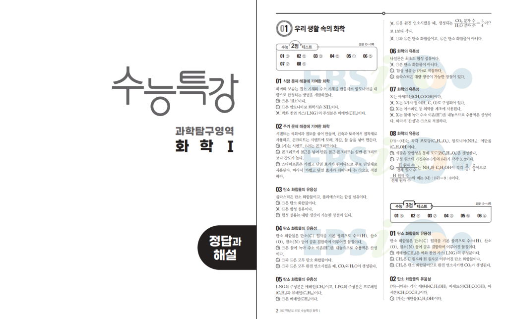 EBS 수능특강 과학탐구영역 화학1은 화1을 수능 흐름으로 정리하고 싶은 학생에게 가장 무난한 선택입니다. 화학은 공식만 외우면 되는 과목처럼 보이지만, 실제로는 개념을 정확히 이해하고 상황에 맞게 적용하는 힘이 점수를 좌우합니다. 이 교재는 2027학년도 수능 연계교재 성격이라서, 단원 구성을 수능에 맞게 정돈해 두었고 문제도 그 방향으로 배치되어 있어서 공부 루틴을 만들기 좋습니다. 특히 처음 시작할 때는 무엇을 어디까지 해야 하는지가 막막한데, 수특은 그 범위를 확실히 잡아준다는 장점이 있습니다. 아래 수특 화학1 답지 pdf 올려두겠습니다.