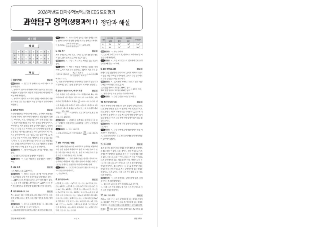 EBS 수능직전보강 클리어 봉투모의고사 생명과학1 답지 (2026)