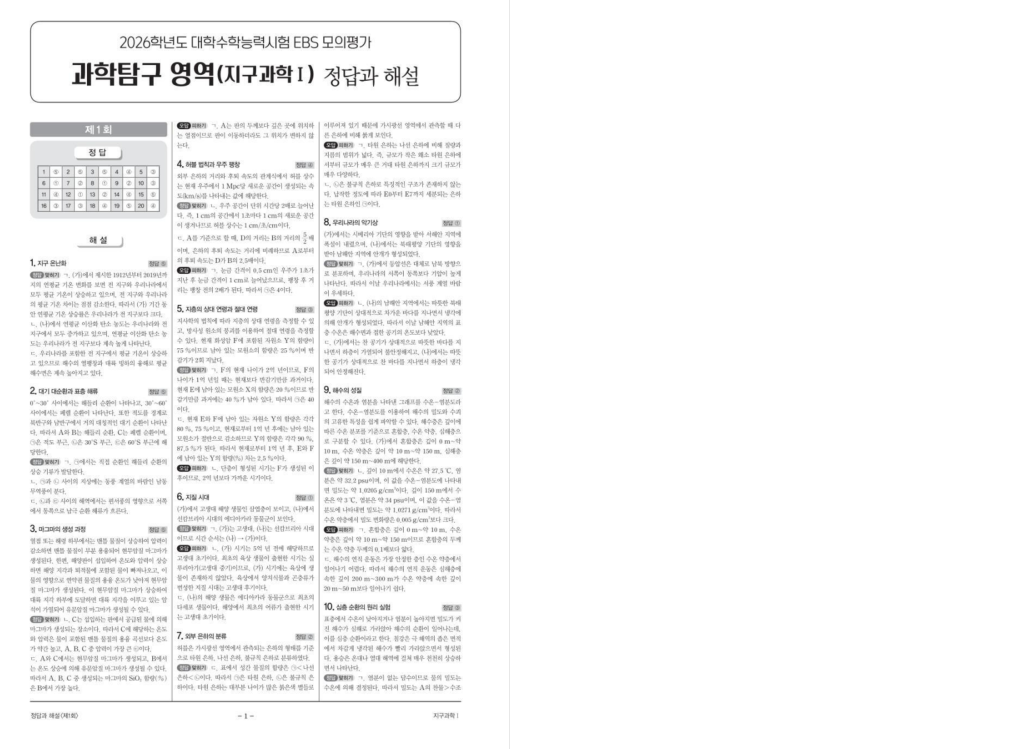 EBS 수능직전보강 클리어 봉투모의고사 지구과학1 답지 (2026)