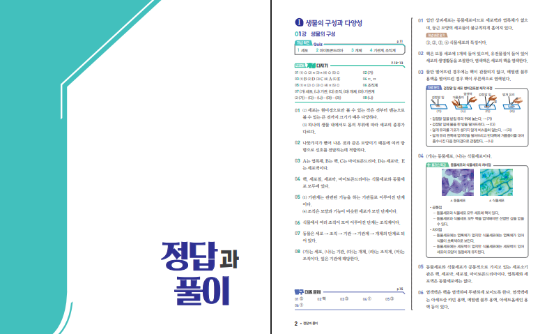 위 링크를 통해 생명과학 ESC 답지를 열람할 수 있습니다. 이 책의 강점은 개념 정리 → 개념 다지기 → 실력 다지기 → 서술형 다지기처럼 단계가 분명하다는 점입니다. 처음에는 개념을 짧고 깔끔하게 잡아 주고, 바로 확인 문제로 넘어가서 이해가 됐는지 점검하게 합니다. 그다음 실력 다지기에서는 내신에서 자주 나오는 유형을 통해 적용 연습을 하고, 서술형 다지기에서는 문장으로 이유를 설명하는 연습까지 하게 됩니다. 생명과학은 그림, 표, 실험 결과처럼 자료가 자주 나오기 때문에 탐구 부분을 통해 자료 해석 감각을 같이 키우는 것이 중요한데, 이 교재는 탐구 활동을 설명하고 대표 문제로 연결해 주는 방식이라 수업 복습과 시험 대비를 동시에 하기가 편합니다. 문제를 풀다 막히면 억지로 외우기보다, 해당 개념이 어디에서 끊겼는지 찾아 다시 읽고 바로 비슷한 문제를 풀어 보는 방식으로 반복하면 효과가 더 좋아집니다.