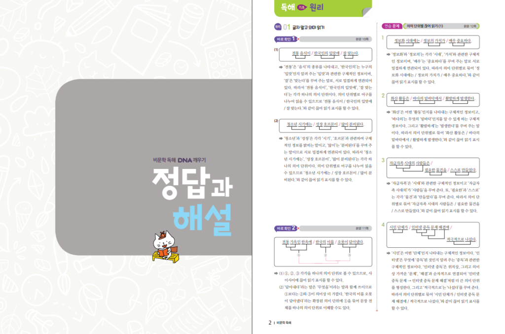 비문학 DNA 깨우기 0단계 독해 기초 답지 (2026)