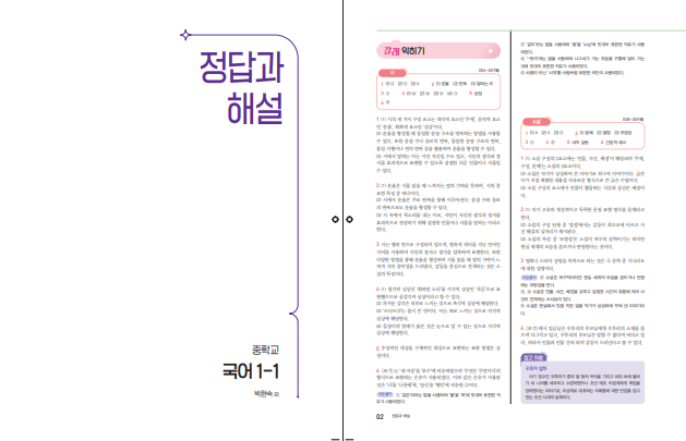 비상 자습서 중학 국어 1-1 (박현숙) 답지 (2026)