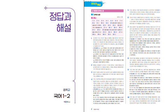 비상 중등 국어 1-2 (박현숙) 평가문제집 답지 (2025)