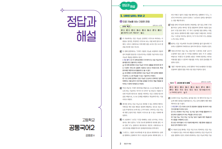 비상 평가문제집 공통국어 2 (강호영) 답지 (2025)