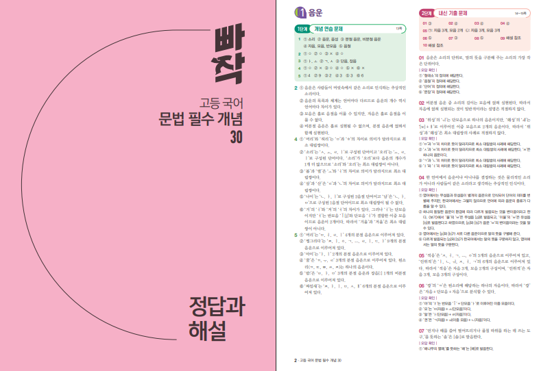 빠작 고등 국어 문법 필수 개념 30 답지 (2026)