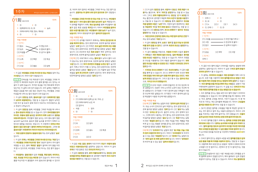 위 링크를 통해 뿌리 깊은 초등 독해 도약 4단계 답지를 열람할 수 있습니다. 학습 장치는 저학년 고학습으로 넘어가는 시기에 특히 유용합니다. 매 회 주요 어휘를 복습하는 페이지로 낱말 뜻과 쓰임을 다시 잡고, 주말 부록의 퍼즐과 퀴즈, 문장부호 연습 등 활동형 과제가 흥미와 집중을 이어 줍니다. 문제 유형별 분석표는 아이가 어떤 유형에서 약한지 한눈에 보여 주어 보완 계획을 세우기 쉽습니다. 성취를 표시하는 붙임딱지는 작은 보상 역할을 하며, 보호자는 진도와 정확도를 함께 확인할 수 있어 지도 효율이 높습니다.