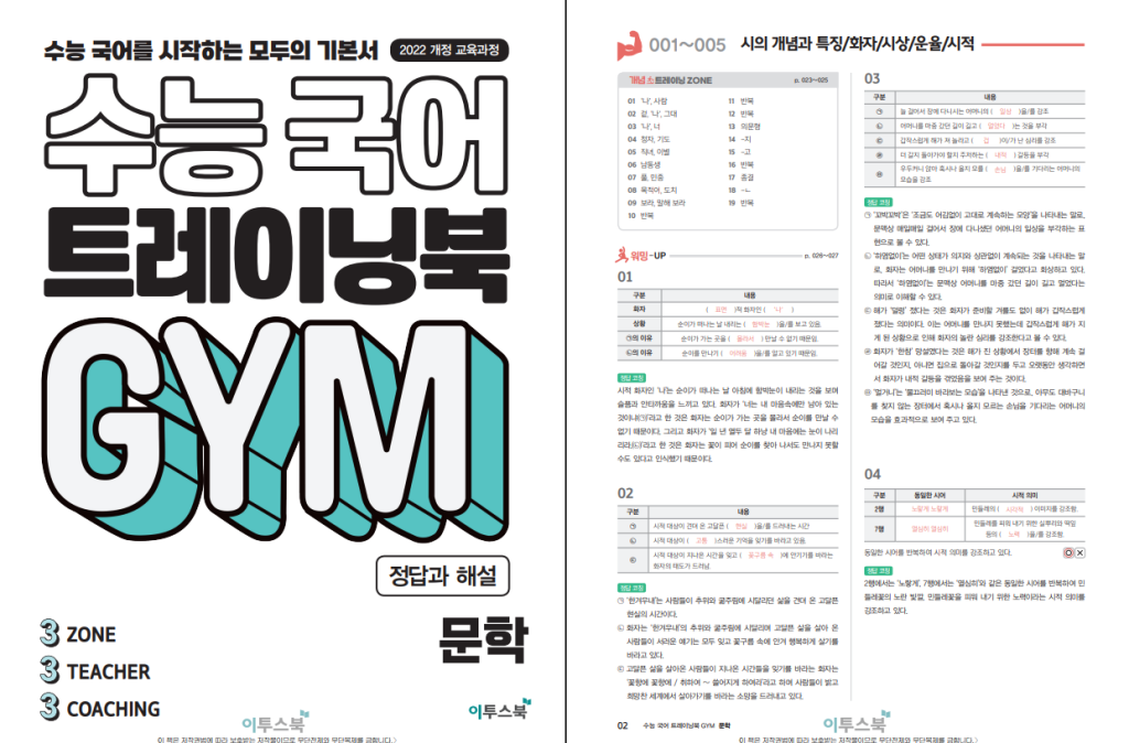 수능 국어 트레이닝북 GYM 문학 답지 (2025)