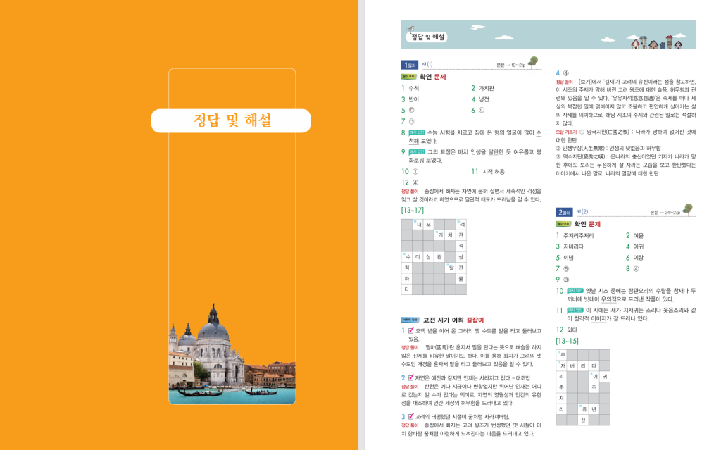 이 교재는 중학 국어 교과서에서 자주 등장하는 필수 어휘를 선별하여 체계적으로 정리한 것이 특징입니다. 시, 소설, 설명문, 논설문 등 다양한 영역과 연결된 어휘를 학습할 수 있도록 구성되어 있어 실제 수업과 자연스럽게 연계됩니다. 또한 한자어, 문법 개념어, 배경지식까지 함께 학습할 수 있어 단순 암기를 넘어 이해 중심의 어휘 학습이 가능하도록 설계되어 있습니다. 아래 링크를 통해 숨마쿰라우데 국어 어휘력 2 답지를 열람할 수 있습니다.