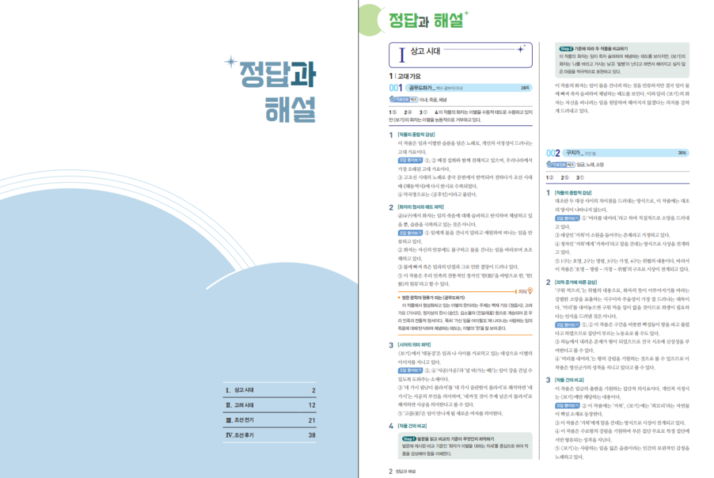 이 책을 잘 쓰는 방법은 간단합니다. 먼저 ‘시어·시구 풀이’ 같은 설명을 보면서 낯선 단어를 정리하고, 그다음에 ‘이해와 감상’으로 핵심 정서를 잡은 뒤 문제를 풀어 보는 흐름이 가장 안정적입니다. 고전 시가는 특히 이 표현이 어떤 상황을 말하는지와 화자의 마음이 어디서 드러나는지가 자주 출제되니, 정답을 맞히는 것보다 근거 문장을 표시하는 습관이 더 중요합니다. 답지는 채점용으로만 빨리 넘기기보다, 틀린 문제에서 해설이 어떤 근거를 잡는지 확인하면서 ‘왜 오답이 되는지’까지 같이 점검하는 방식으로 활용하면 점수 올라가는 속도가 빨라집니다.
