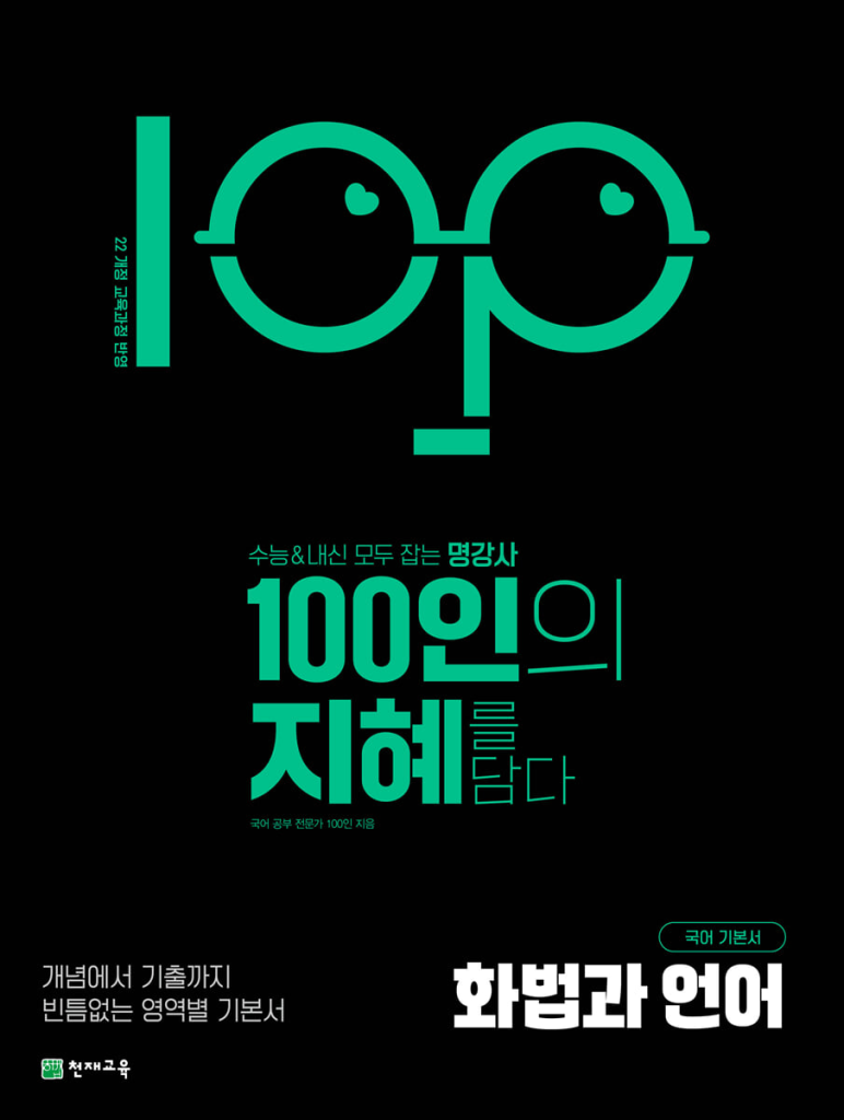 전체적으로 보면 국어를 감으로 풀지 않고, 개념과 문제 접근법을 함께 익히고 싶은 학생에게 잘 어울리는 교재입니다. 너무 가볍게 훑는 책이 아니라 기본기를 제대로 쌓게 해 주는 스타일이라서, 내신 대비용으로도 좋고 수능 기초를 다지는 용도로도 괜찮습니다. 특히 문법 개념이 자꾸 헷갈리거나 중세 국어와 규범 파트가 부담스러운 학생, 화법 문제에서 선택지 판단이 어려운 학생이라면 이런 기본서가 큰 도움이 될 수 있습니다. 한 권으로 정리하면서 실전 감각까지 함께 키우고 싶은 학생에게 실용적인 교재입니다. 본문에 22개정 100인의 지혜 화법과 언어 답지를 첨부해두었습니다. 표지를 꼭 확인하시길 바랍니다.