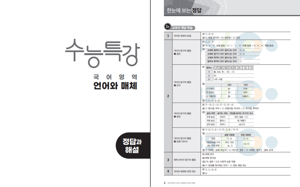 EBS 수능특강 국어영역 언어와 매체 (2026년)는 2027학년도 수능을 준비하는 학생이라면 꼭 챙겨야 하는 수능 연계교재입니다. 언매는 문법처럼 딱딱한 개념도 나오고, 매체 자료처럼 낯선 형태의 지문도 함께 나오기 때문에 감으로 풀면 점수가 흔들리기 쉽습니다. 그래서 처음부터 기준을 세우고, 자주 나오는 출제 포인트를 반복해서 익히는 과정이 필요합니다. 이 교재는 최신 수능 경향과 기출 유형을 반영해 기본기를 잡아주는 흐름이라서, 단기간에 정리하고 실전 감각까지 끌어올리는 데 도움이 됩니다. 아래 수능특강 언매 답지 pdf 올려두겠습니다.