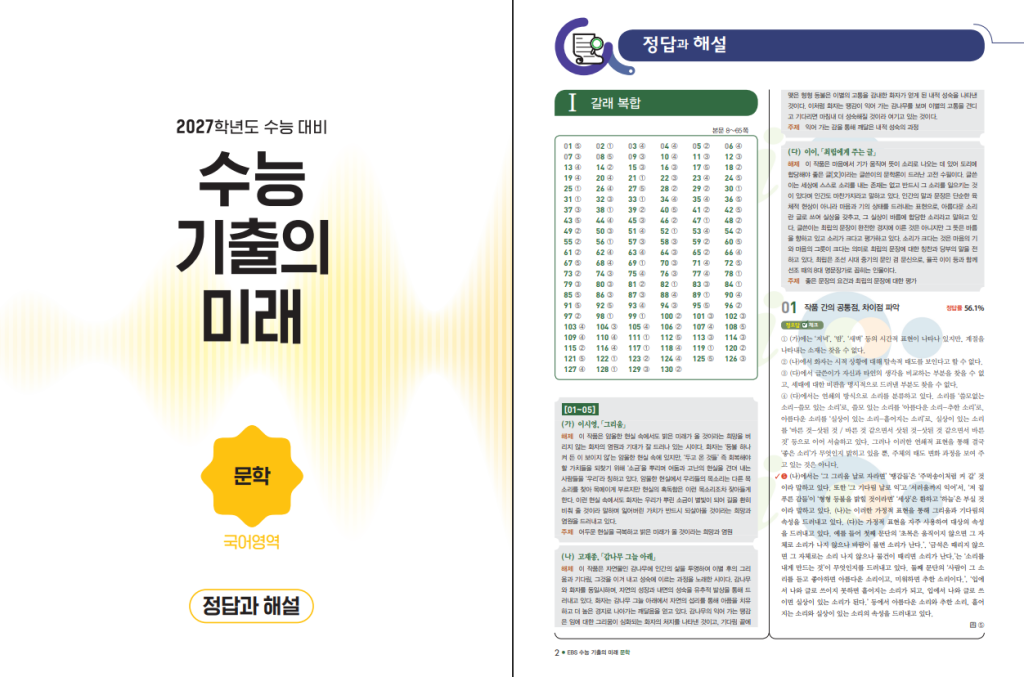 EBS 수능 기출의 미래 국어영역 문학은 2027학년도 수능을 목표로 하는 학생이 문학 기출을 빠르게 정리하고, 자주 나오는 출제 방식에 익숙해지도록 만든 문제집입니다. 문학은 작품을 많이 아는 것도 중요하지만, 시험에서는 지문에서 근거를 찾고, 보기와 연결해서 판단하는 힘이 점수로 바로 이어집니다. 이 책은 그 부분을 기출 중심으로 반복 훈련하게 해 주는 성격이 강합니다. 아래 27학년도 수능 기출의 미래 문학 답지 pdf 파일을 올려두도록 하겠습니다.