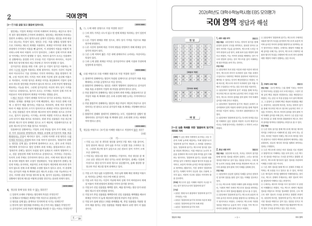 EBS 수능직전보강 클리어 봉투모의고사 국어 답지 (2026)