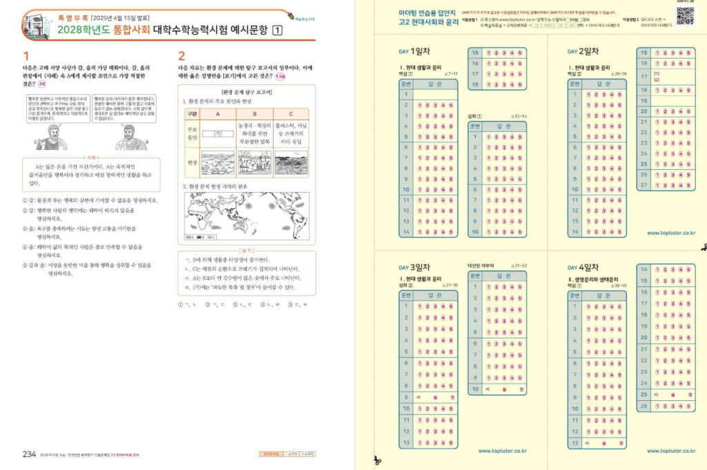 마더텅 수능·전국연합 학력평가 기출문제집 고2 현대사회와 윤리 (2026년)은 2022 개정 교육과정을 반영하여 고등학교 현대사회와 윤리 과목의 기출문제를 체계적으로 정리할 수 있도록 구성된 실전 대비 교재입니다. 윤리 과목은 개념 이해뿐 아니라 다양한 사례에 적용하는 사고력이 중요한데, 이 교재는 최신 기출문제를 중심으로 반복 학습이 가능하도록 설계되어 있어 내신과 수능을 동시에 준비하려는 학생에게 적합합니다. 아래에 마더텅 고2 현대사회와 윤리 답지를 올려두도록 하겠습니다. 매년 바뀌므로 표지를 꼭 확인하시길 바랍니다.