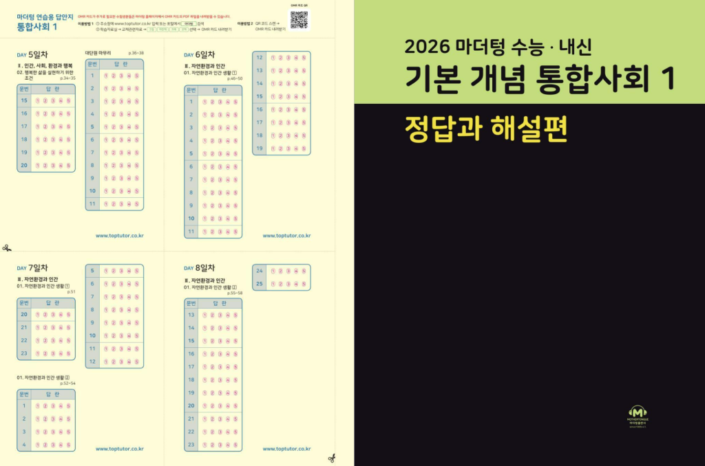 마더텅 수능 내신 기본 개념 통합사회1 답지 (2026)