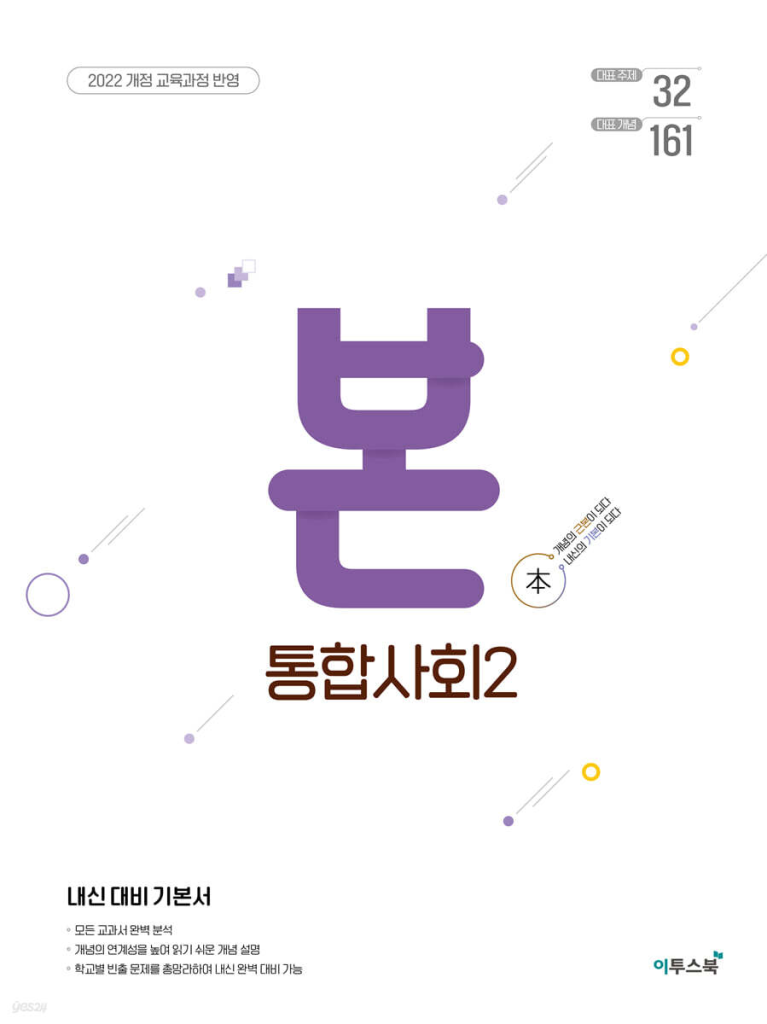 BON 본 통합사회2는 2022 개정 교육과정을 토대로 고1 2학기 범위를 한 권에 정리한 내신 기본서예요. 1권이 ‘통합적 관점·자연환경·문화·생활공간’에 초점을 맞췄다면, 2권은 시민으로서의 권리와 책임, 공정한 사회의 조건, 경제 활동과 세계 질서, 그리고 지속가능한 미래까지 ‘현재–세계–미래’를 관통하는 주제를 촘촘히 엮습니다. 모든 교과서를 비교 분석해 공통 핵심을 뽑고, 앞뒤 개념을 자연스럽게 이어 주는 설명 덕분에 처음 읽는 학생도 흐름을 놓치지 않고 맥락 속에서 개념을 잡을 수 있습니다. 아래 본 통합사회2 답지를 올려두도록 하겠습니다. 표지를 꼭 확인하시길 바랍니다.