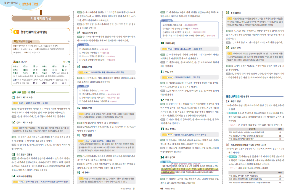 구성은 크게 본문과 해설서 역할을 하는 딱 맞는 풀이집으로 나뉘어, 스스로 공부할 때 막히는 지점을 줄이는 방향으로 설계되어 있습니다. 본문에서는 개념만 나열하기보다 시험에 잘 출제되는 자료를 함께 제시해, 자료 해석과 개념 연결을 동시에 연습하게 합니다. 또한 중간·기말고사 대비를 고려해 다양한 유형과 난이도의 실전 문제를 담았다고 안내되어 있는데, 자주 나오는 자료형 문항은 자료를 읽고 선택지를 거르는 이유까지 이해해야 점수가 안정되기 때문에 이런 구조가 도움이 됩니다. 풀이집에서는 자료와 선택지를 자세히 분석해 주는 해설을 강조하고 있어, 혼자 풀다가 오답 이유를 정확히 잡고 넘어가려는 학습 방식에 잘 맞습니다. 아래 링크를 통해 고등 세계사 셀파 답지를 열람할 수 있습니다.