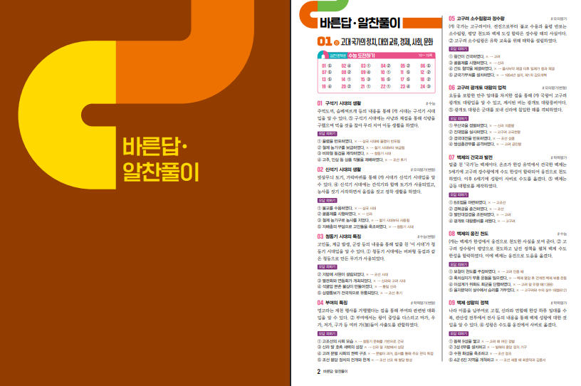 이 책은 강별 개념 학습을 중심으로 한국사의 핵심 내용을 정리할 수 있도록 구성되어 있습니다. 수능에서 문제로 출제될 가능성이 높은 주요 개념을 선별하여 제시하고, 관련 연표와 사료, 자료를 함께 제공하여 역사적 흐름을 쉽게 이해할 수 있도록 하였습니다. 또한 단답형 문제와 OX 문제를 활용하여 학습한 개념을 즉시 확인하고 반복적으로 복습할 수 있도록 구성되어 있습니다. 이러한 방식은 단순한 암기가 아니라 개념 중심의 이해를 돕고, 한국사의 전체 흐름을 체계적으로 정리하는 데 도움을 주는 학습 방법입니다. 아래 링크로 수능 온 한국사 답지를 열람할 수 있습니다.