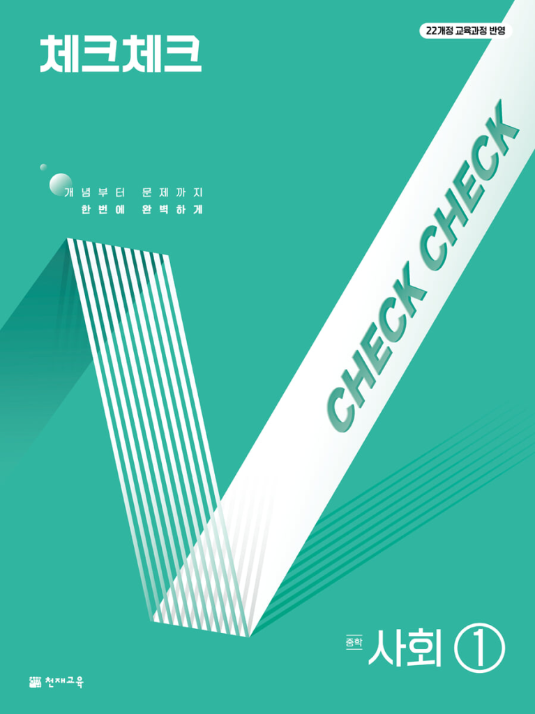 체크체크 중학 사회 1 (2026년)은 중학교 1학년 사회 내용을 개념 이해부터 문제 풀이까지 한 권 흐름으로 잡아주는 내신 대비 교재입니다. 2022 개정 교육과정을 반영했고, 전국 중학교 기출 문제를 분석해서 시험에 자주 나오는 유형을 중심으로 구성했다고 안내되어 있습니다. 사회는 교과서 글만 읽으면 익숙해지는 정도에서 멈추기 쉬운데, 이 책은 사진·도표·지도 같은 자료가 풍부해서 실제 시험 스타일에 가까운 연습을 많이 하게 해 준다는 점이 장점입니다. 아래 체크체크 사회1 연간서 답지 pdf 파일을 올려두도록 하겠습니다. 표지를 꼭 확인하시길 바랍니다.