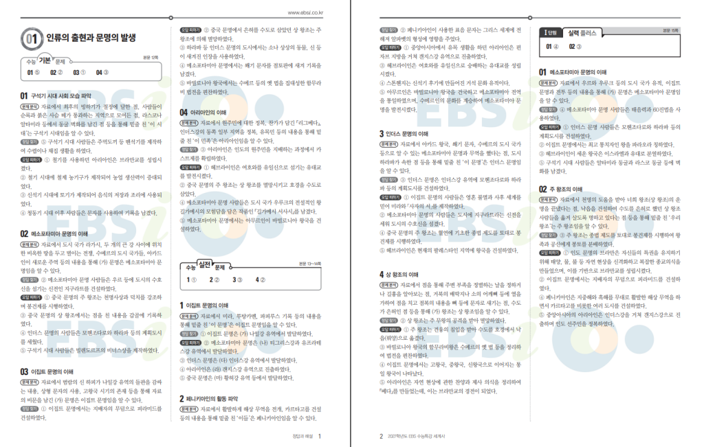 EBS 수능특강 세계사는 2027학년도 수능을 준비하는 학생이 세계사의 큰 흐름을 이해하고, 사건과 시대를 연결해 사고할 수 있도록 돕는 연계 교재입니다. 세계사는 암기 과목처럼 느껴지기 쉽지만, 실제 수능에서는 단순한 연표 암기보다 원인과 결과, 지역 간의 상호 작용을 이해했는지를 묻는 문제가 많이 출제됩니다. 이 교재는 인류의 출현부터 현대 세계까지를 하나의 이야기처럼 이어 주어, 처음 공부하는 학생도 흐름을 놓치지 않고 따라갈 수 있게 구성되어 있습니다. 아래 세계사 수능특강 답지 pdf 올려두겠습니다.