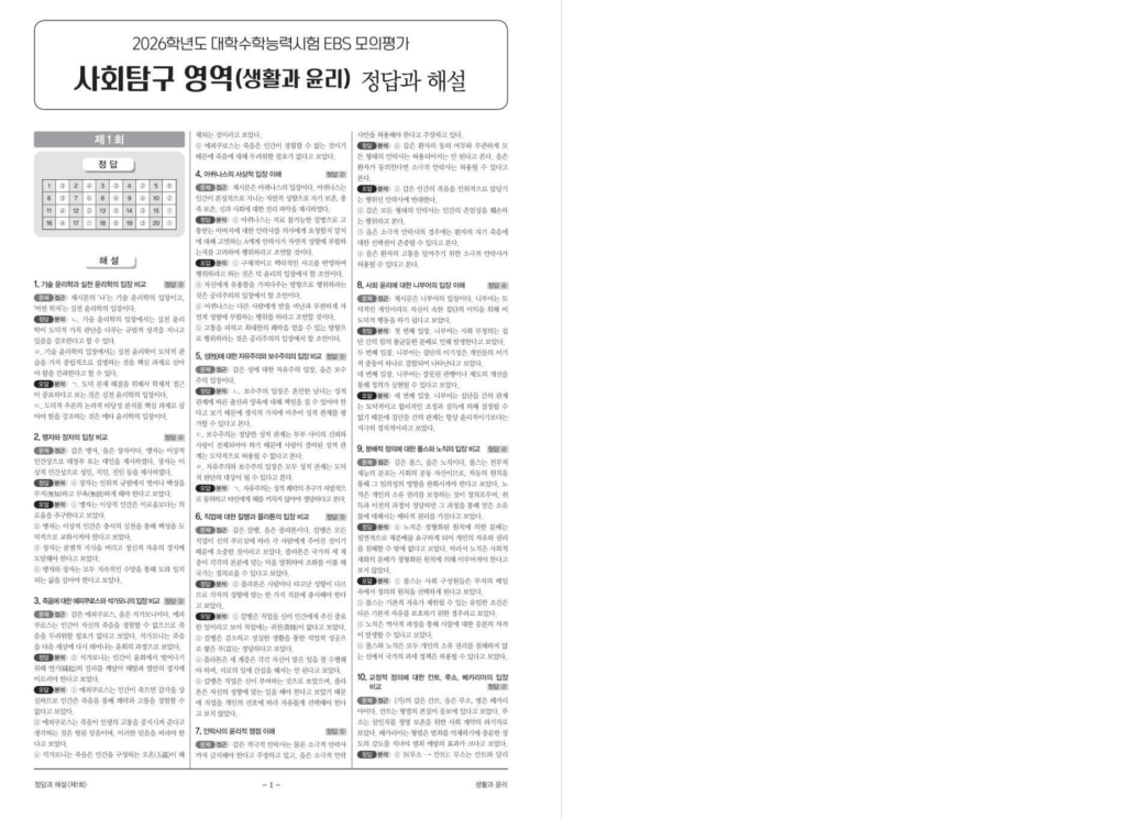 EBS 수능직전보강 클리어 봉투모의고사 생활과 윤리 답지 (2026)