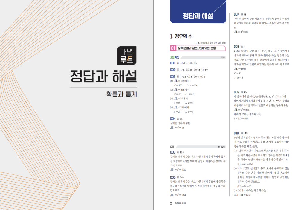 개념루트 확률과 통계는 개념을 반복 학습하면서 실전 감각을 기르고 싶은 학생들에게 적합한 교재입니다. 고등학교 확률과 통계 영역을 한 권으로 정리하고, 최신 교육과정과 서술형 평가까지 대비할 수 있어 내신과 수능을 동시에 준비하는 데 큰 도움이 됩니다. 본문에 개념루트 확통 답지를 첨부해두었으니 필요하신 분들은 이용하시길 바랍니다. 최신 교육과정을 반영한 교재이므로, 표지를 꼭 확인하시길 바랍니다.