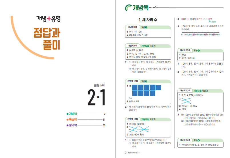 개념플러스유형 기본완성 초등수학 2-1 답지 (2025)