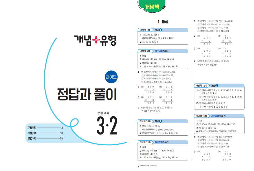 개념플러스유형 라이트 초등수학 3-2 답지 (2026)