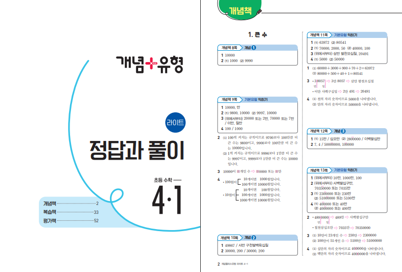 개념플러스유형 라이트 초등수학 4-1 답지 (2026)