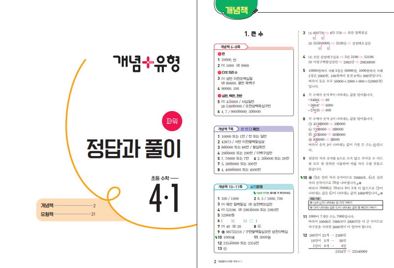 위 링크를 통해 개념+유형 파워 4-1 답지 열람할 수 있습니다. 난이도 배열은 하 15%, 중 40%, 상 30%, 최상 15%로 소개되어 기초 점검부터 심화 도약까지 한 권에 담아냅니다. 쉬운 문제로 원리를 확인하고 변형·통합 문항에서 조건을 정리하게 하여, 연산력과 사고력을 함께 끌어올리는 설계입니다. 해설은 ‘왜 이 식을 세우는가’에 초점을 두어 식 세우기 실수를 줄이는 데 효과적입니다. 특히 ‘곱셈과 나눗셈’의 다단계 계산, ‘규칙 찾기’의 패턴 일반화 문항이 상위권 대비에 실질적인 도움이 됩니다.