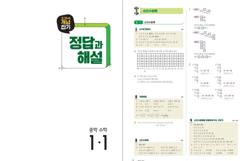 교과서 개념 잡기 중등 수학 1-1 답지 (2026)