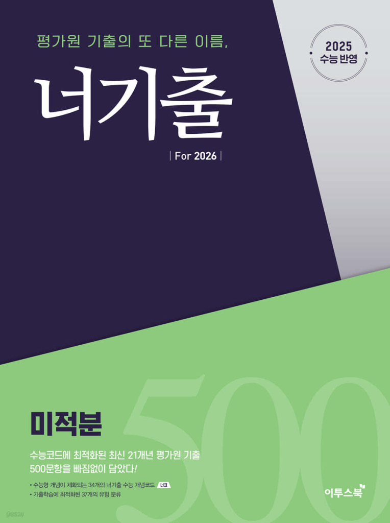 너기출 For 2은 평가원 기출 중심의 학습에 최적화된 구성으로, 미적분의 전 범위를 “개념–문제–해설”의 한 흐름으로 정돈해 줍니다. 교재는 J–K–L 단원 수열의 극한·급수 → 여러 가지 함수의 미분·미분법 → 여러 가지 적분법·정적분의 활용 으로 짜임새 있게 전개되며, 2015 개정 교육과정에 부합하는 문항만 선별하고 필요한 경우 변형 기출까지 반영하여 최신 경향을 놓치지 않도록 했습니다. 분철이 가능한 448쪽의 볼륨으로 학교 수업, 자습, 이동 시간을 가리지 않고 회독 계획을 세우기 수월합니다. 전반적인 편집도 풀이 흐름이 한눈에 들어오도록 도식화되어 있어, 기출을 처음 접하는 학생도 접근 장벽이 낮습니다. 아래 너기출 미적분 답지 PDF를 올려두도록 하겠습니다.