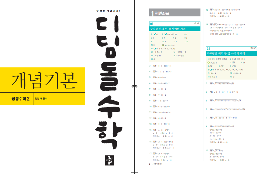 디딤돌수학 개념기본 공통수학1 (2026년)은 중학교 과정을 마치고 고등 수학으로 넘어가는 시점에서 꼭 필요한 개념을 체계적으로 정리해 주는 교재입니다. 고등 수학은 추상적인 개념이 많아지기 때문에 처음 개념을 어떻게 이해하느냐가 매우 중요한데, 이 교재는 개념을 정확하게 잡을 수 있도록 단계적으로 설명해 주는 것이 특징입니다. 특히 개념 이해와 문제 적용을 동시에 잡을 수 있도록 구성되어 있어, 예비 고등학생이나 기초를 다시 다지고 싶은 학생들에게 적합합니다. 아래 디딤돌수학 개념기본 공수1 답지 pdf도 올려두겠습니다. 표지를 꼭 확인하시길 바랍니다.