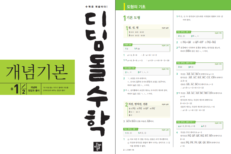 디딤돌 수학 개념기본 중1-2는 중학교 1학년 2학기 수학을 개념부터 차근차근 정리하고 싶은 학생에게 잘 맞는 교재입니다. 2022 개정 교육과정을 반영한 책으로, 기본도형과 작도, 다각형의 성질, 원과 부채꼴, 입체도형, 통계까지 2학기 핵심 내용을 고르게 담고 있습니다. 이름처럼 개념에 초점을 맞춘 책이라서 단순히 문제 수만 많은 유형서와는 다르게, 왜 그런 풀이가 나오는지 이해하는 과정에 더 힘을 실은 편입니다. 중학교 1학년 2학기 내용을 처음 배우는 학생이나, 학교 시험을 앞두고 개념을 다시 정리하려는 학생이 활용하기 좋습니다. 본문에 디딤돌 수학 개념기본 중1-2 답지 pdf도 함께 올려두겠습니다.