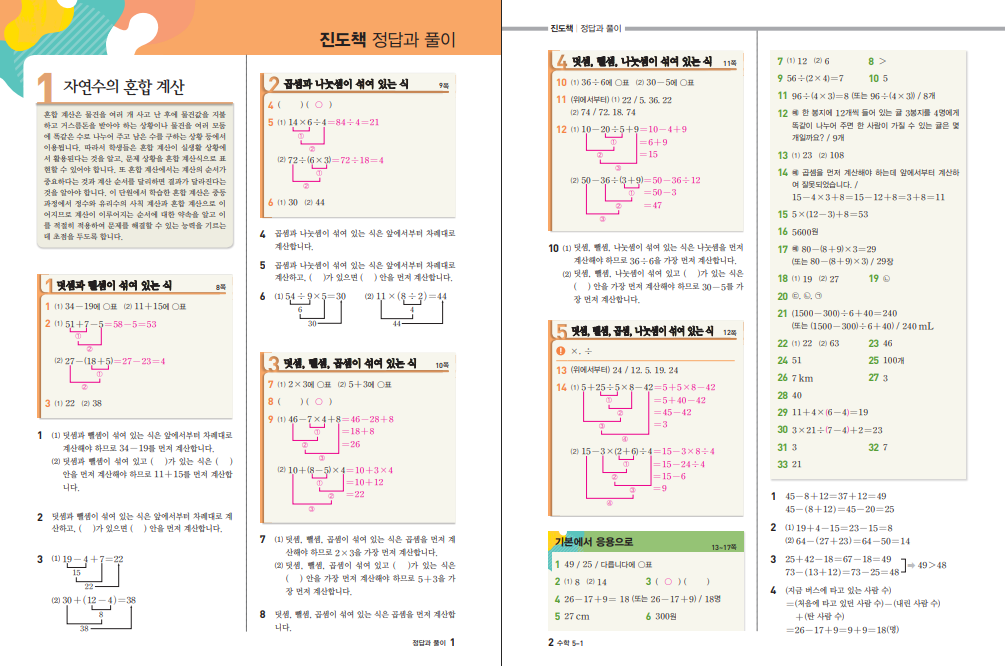 이 교재는 분수의 덧셈과 뺄셈, 삼각형, 소수의 덧셈과 뺄셈, 사각형, 꺾은선 그래프, 다각형 등 4학년 2학기 전 범위를 체계적으로 다루고 있습니다. 각 단원은 교과서 개념을 정리한 뒤 다양한 유형의 문제를 통해 개념을 실제 문제에 적용해 볼 수 있도록 구성되어 있으며, 점차 난이도가 높은 문제로 확장되는 흐름을 가지고 있습니다. 특히 실전 유형 문제를 반복적으로 풀어보면서 개념을 정확하게 활용하는 연습을 충분히 할 수 있다는 점이 특징입니다. 아래 링크로 디딤돌 초등수학 응용편 4-2 답지 열람이 가능합니다.