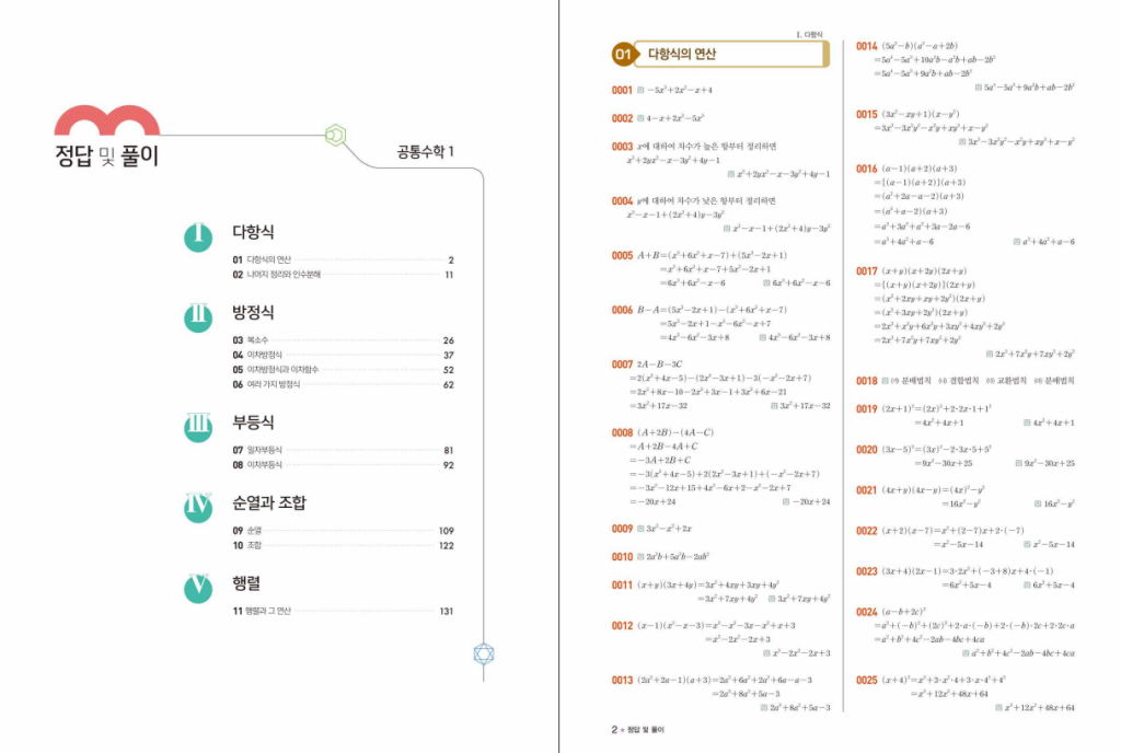 라이트쎈 고등 공통수학 1(2026년용)은 고등학교 1학년 1학기 공통수학 내용을 처음부터 차근차근 정리하고 싶은 학생을 위한 문제 기본서입니다. 2022 개정 교육과정을 기준으로, 다항식·방정식·부등식·순열과 조합·행렬까지 고1 1학기에서 배우는 핵심 단원을 한 권에 묶어 놓았기 때문에, 학교 수업과 내신 시험 준비를 함께 하기 좋습니다. 전년도 교재와 내용은 같고 표지만 바뀐 구성이어서, 이미 라이트쎈 스타일에 익숙한 학생이라면 그대로 이어서 사용할 수 있는 점도 장점입니다. 아래 라이트쎈 공통수학1 답지 PDF 파일을 첨부해두도록 하겠습니다. 표지를 참고하시길 바랍니다.