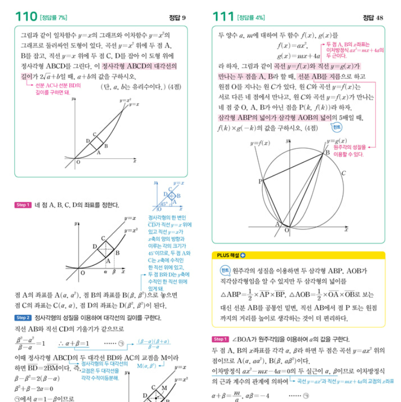 학습법은 하루에 한 중단원 분량을 정해 시간 제한을 두고 풀이한 뒤, 해설에서 사용된 핵심 아이디어와 계산 실수 원인을 한두 줄로 정리하는 방식이 효율적입니다. 서술형은 조건 정리→식 세우기→근거 적기 순서를 습관화하면 점수가 안정되고, 최고난도 문항은 맞히는 것보다 풀이 구조를 베껴 자신의 템플릿으로 만드는 데 의미를 두면 다음 회차에서 체감이 큽니다. OMR 카드로 20~30분 타임어택을 병행하면 실전 템포를 잡기 좋습니다.