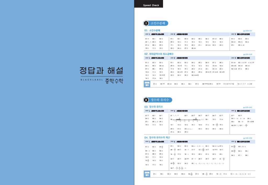 블랙라벨 중학 수학 1-1(2025년)은 2022 개정 교육과정에 맞춰 중1 1학기 전 범위를 상위권 기준으로 재구성한 심화형 문제집입니다. 소인수분해–정수와 유리수–문자와 식–좌표평면과 그래프까지 핵심 단원을 촘촘히 다루며, 내신 변별을 만드는 상·최상 난도 비중을 크게 가져간 ‘다이아몬드식’ 구성이 강점입니다. 자사고와 강남8학군 교사가 집필·검토에 참여하고 우수 학군 기출과 신경향 문항을 엄선해 실전성을 높였으며, 상위권 선배들의 풀이 관점을 녹여 ‘왜 이렇게 생각해야 하는가’를 단계적으로 익히기 좋습니다. 아래 블랙라벨 1-1 답지 PDF 파일을 올려두도록 하겠습니다. 교육과정이 바뀌었으므로 표지를 꼭 확인하시길 바랍니다.
