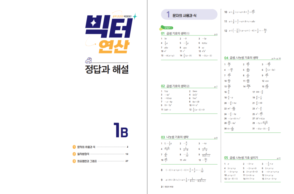 빅터 연산 중학수학 1B 답지