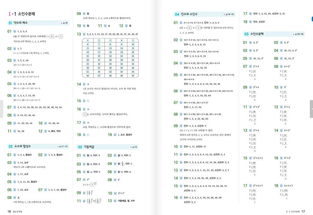 추천하는 루틴은 하루 20~30분씩 짧게 꾸준히 하는 방식입니다. 한 단원을 길게 몰아서 하기보다, 오늘은 소인수분해 연산 조금, 내일은 유리수 덧셈뺄셈 조금처럼 끊어서 반복하면 계산력이 안정됩니다. 문장제는 정답만 맞히는 것보다 식 세우는 과정을 적는 연습을 같이 해야 중학교 서술형에서도 점수를 잃지 않습니다. 연산이 탄탄해지면 이후 개념서나 유형서로 넘어갈 때 체감이 크게 좋아지며, 기초를 다지는 데 매우 좋습니다. 교육과정이 바뀔 때마다 개정되므로 표지 확인을 꼭 하시고, 본문에 수력충전 중1-1 답지 pdf 첨부해 두겠습니다.