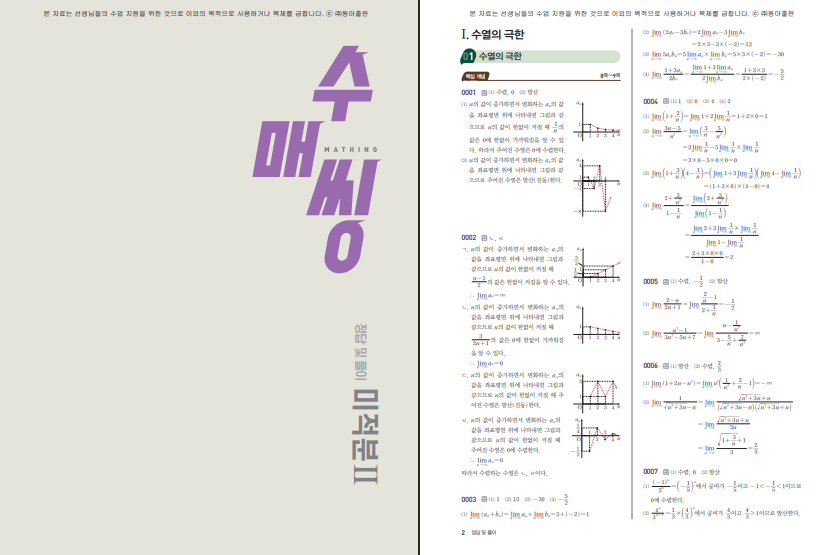 수매씽 미적분2 문제 기본서(2026년)는 2022 개정 교육과정에 맞춰 미적분2 전 범위를 문제로 탄탄하게 연습하도록 만든 교재입니다. 앞에서 공통수학1·2, 대수, 미적분1까지 수매씽으로 공부한 학생이라면 같은 구성과 해설 흐름이라서 부담 없이 이어서 볼 수 있습니다. 이 책은 미적분2에서 꼭 알아야 하는 수열의 극한과 급수, 지수·로그·삼각함수의 미분, 그리고 여러 가지 적분법과 정적분의 활용까지 한 권에 묶어 두었기 때문에 고2·고3 내신과 수능 선택과목 모두를 염두에 두고 공부하려는 학생에게 맞습니다. 아래 22개정 수매씽 미2 답지 pdf 파일을 올려두도록 하겠습니다.